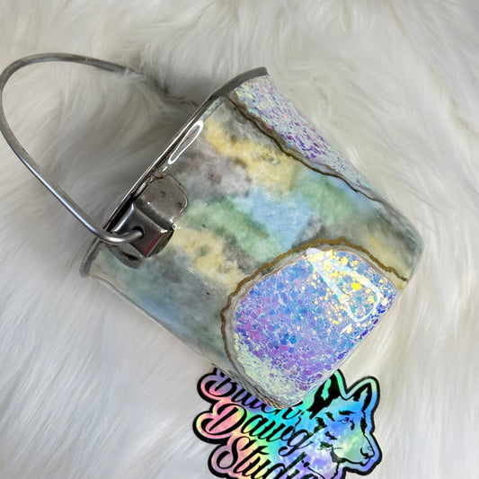 1qt Water Bucket Pail Dog Tumbler - Glitter Opal Geode - Epoxy Tumbler for Dogs