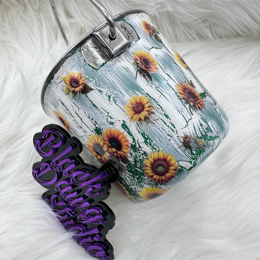 1qt Water Bucket Pail Dog Tumbler - Glitter Weathered Crackle Sunflowers - Epoxy Tumbler for Dogs