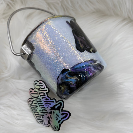 1qt Water Bucket Pail Dog Tumbler | Oil Spill over White Iridescent Glitter | Epoxy Tumbler for Dogs