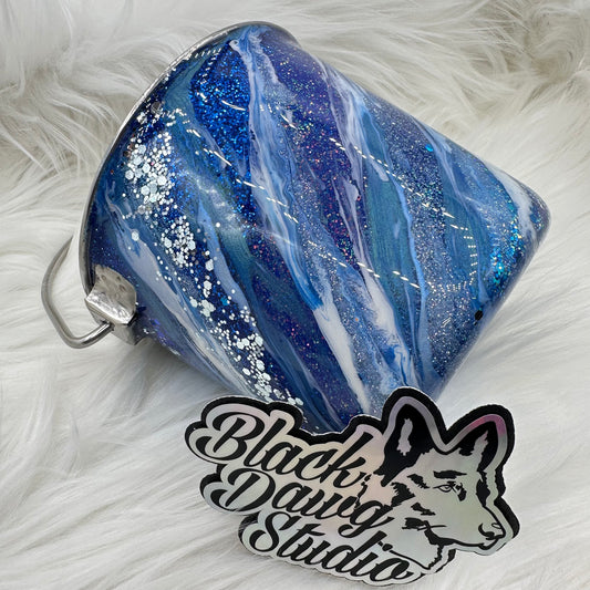 1qt Water Bucket Pail Dog Tumbler | Blue, White, & Silver Milkyway | Epoxy Tumbler for Dogs