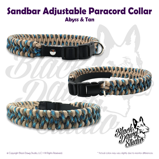 Sandbar Design Adjustable Paracord Dog Collar | Abyss & Tan