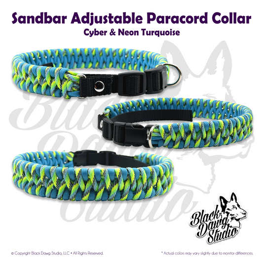 Sandbar Design Adjustable Paracord Dog Collar | Cyber & Neon Turquoise