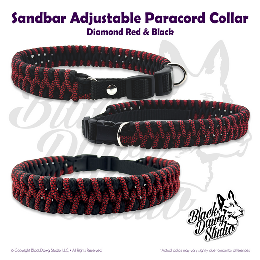 Sandbar Design Adjustable Paracord Dog Collar | Diamond Red & Black