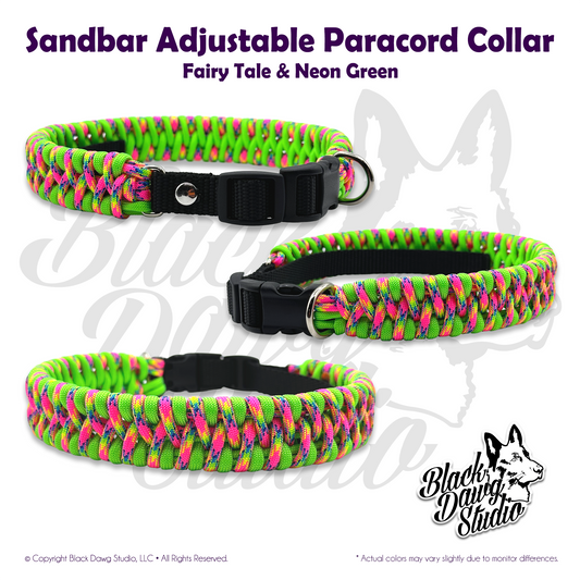 Sandbar Design Adjustable Paracord Dog Collar | Fairy Tale & Neon Green