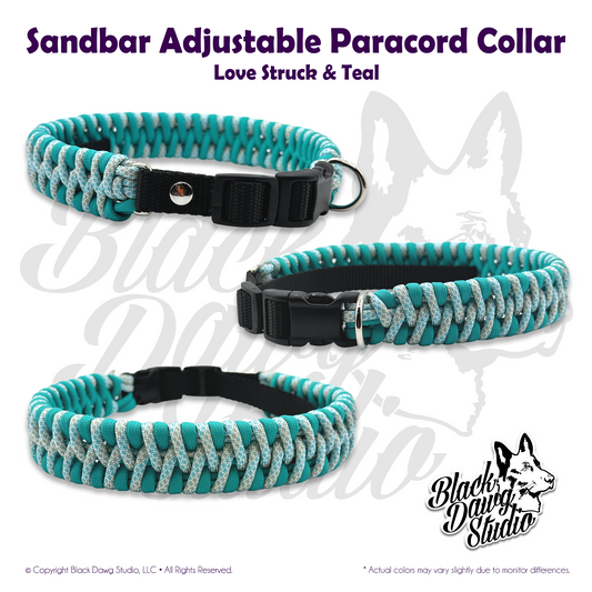 Sandbar Design Adjustable Paracord Dog Collar | Love Struck & Teal