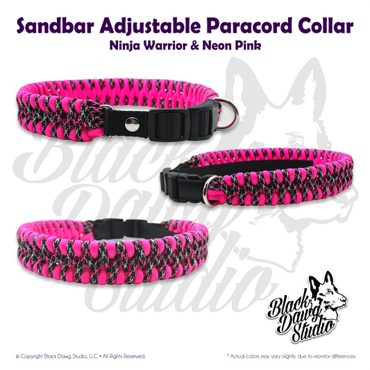 Sandbar Design Adjustable Paracord Dog Collar | Ninja Warrior & Neon Pink