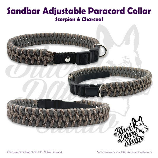 Sandbar Design Adjustable Paracord Dog Collar | Scorpion & Charcoal