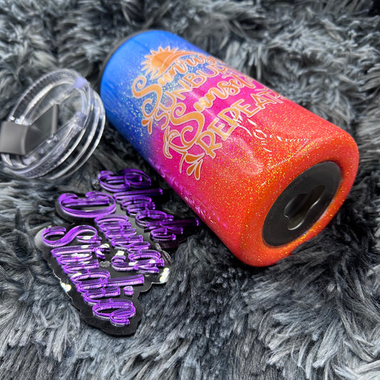 RTS 4-in-1 Can Cooler/Tumbler Sunset Glitter Ombré | Sunrise Sunburn Sunset Repeat decal