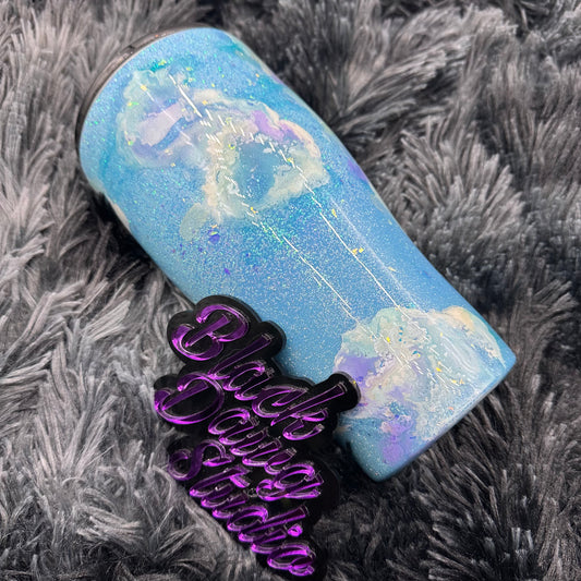 RTS 32oz Handled Tumbler | White and Pink Milkyway | Glow in the Dark | Broke and Bougie decal