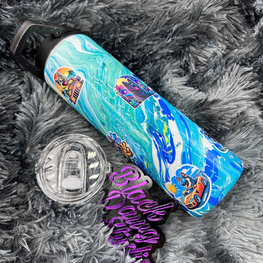 RTS 30oz Skinny Straight Duo Tumbler Hydro Dip in Blues and Greens | Assorted German Shepherd Caricature Stickers