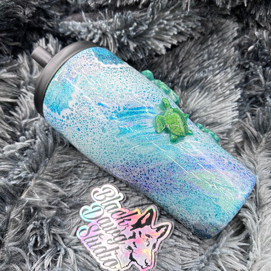RTS 30oz Modern Curve Duo Tumbler Glitter Hydro Dip Power Wash with 3D Sea Turtles