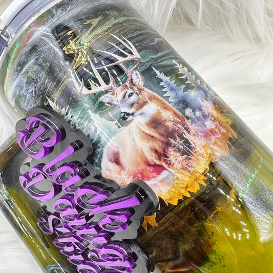 RTS 40oz Big Swig Handled Tumbler | Camo Wood Grain with Whisper Technique | Whitetail Deer decal