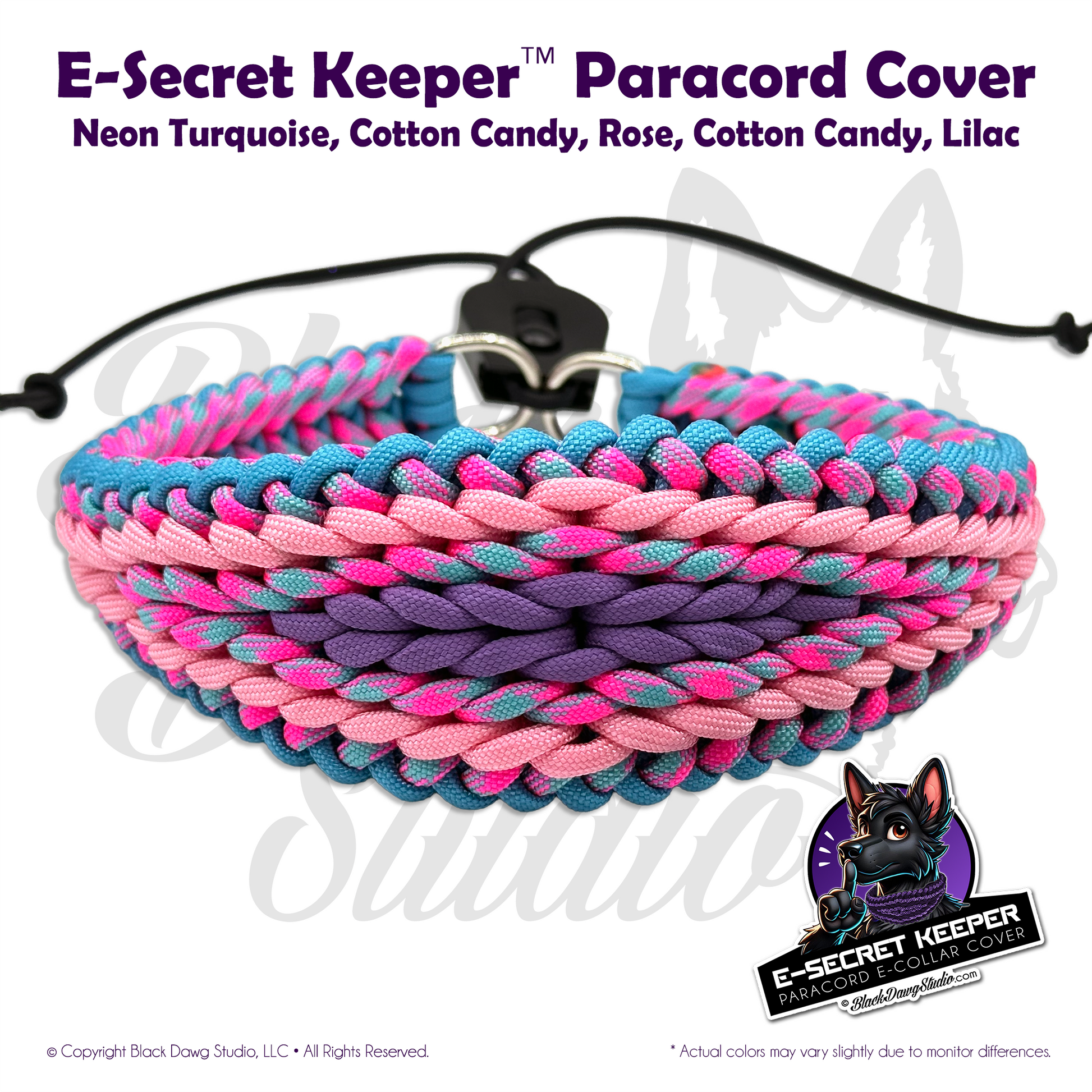 e-Secret Keeper Paracord Collar - Electric/Remote Training Collar Cover - Neon Turquoise, Cotton Candy, Pink Rose, Cotton Candy, and Lilac