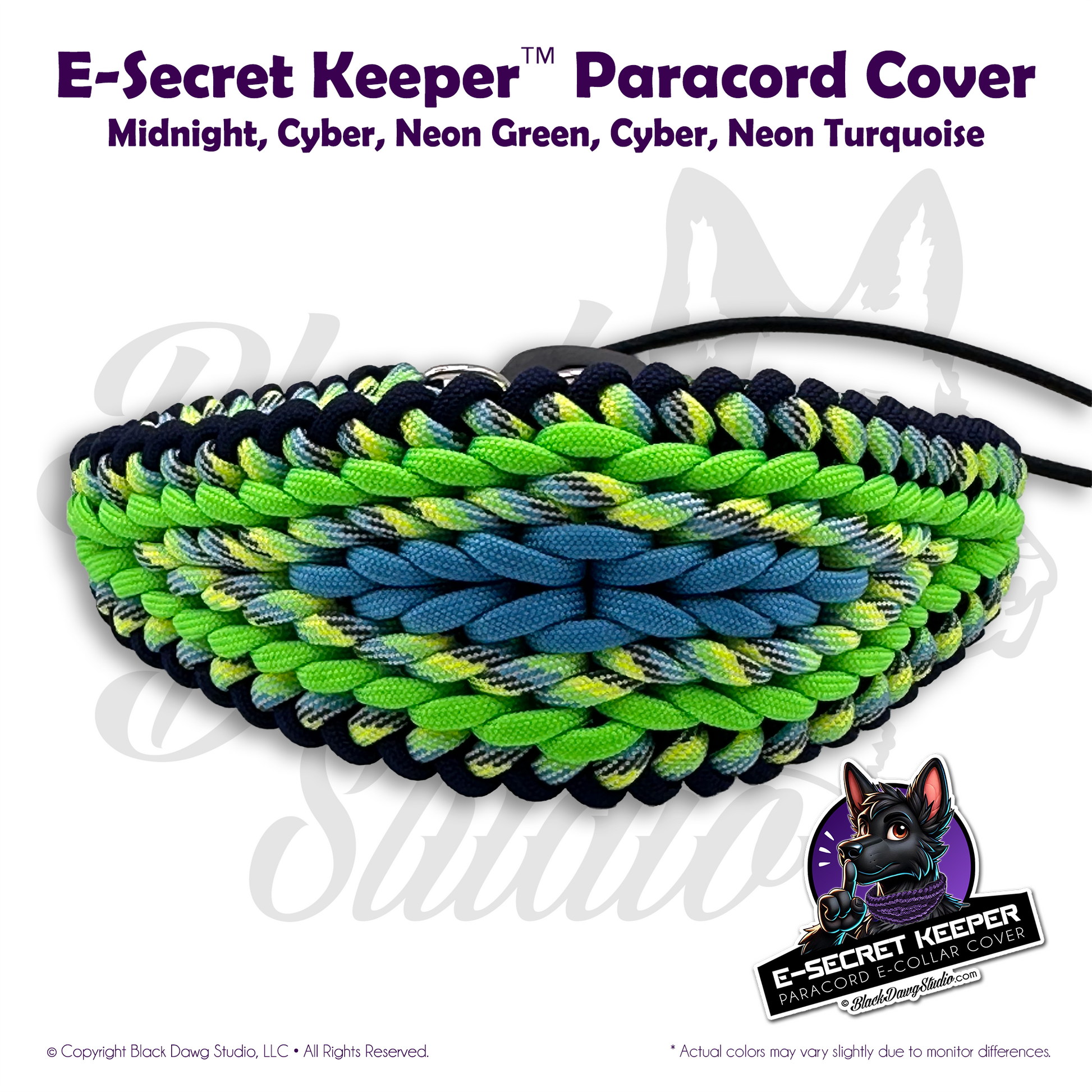 e-Secret Keeper Paracord Collar - Electric/Remote Training Collar Cover - Midnight, Cyber, Neon Green, Cyber, Neon Turquoise
