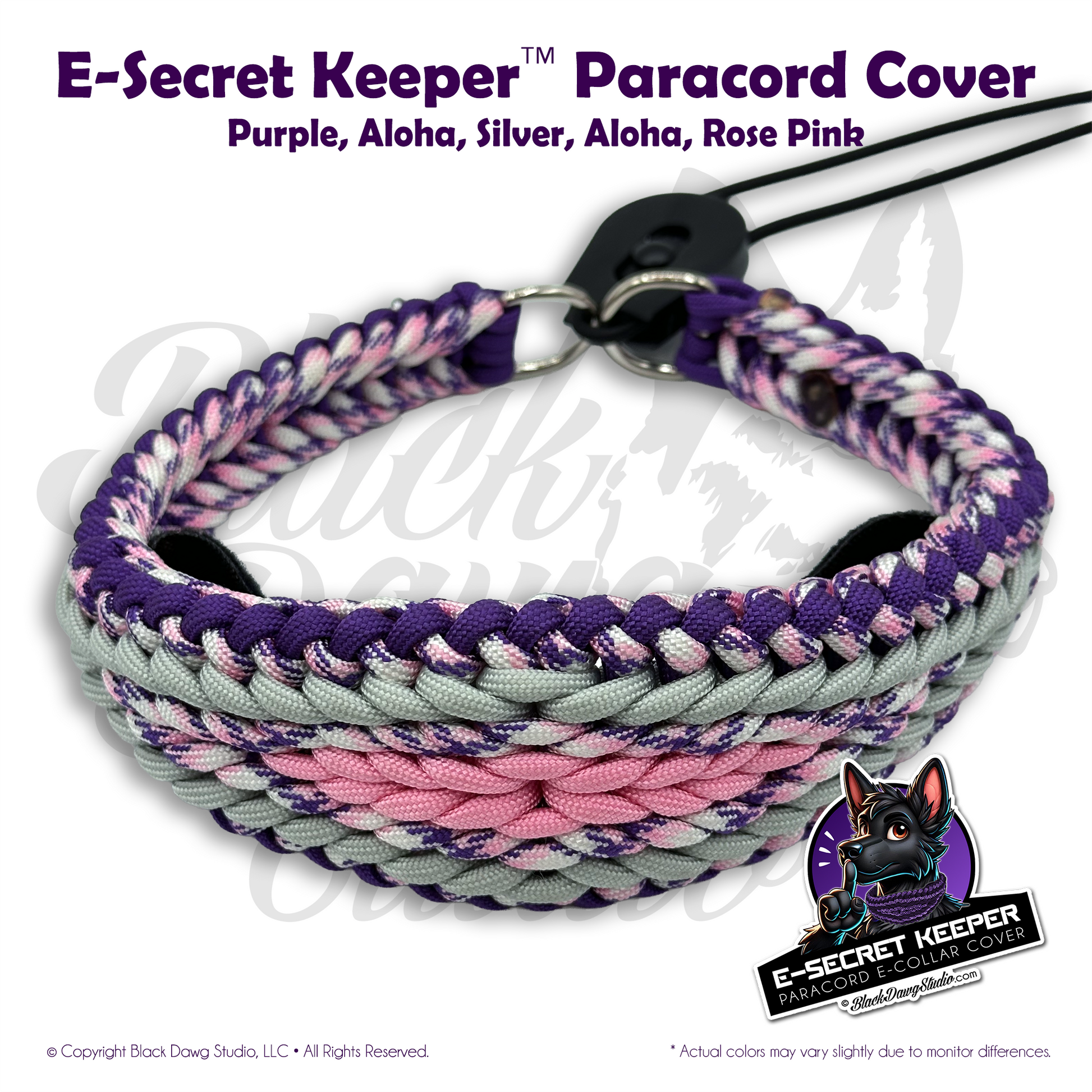 e-Secret Keeper Paracord Collar - Electric/Remote Training Collar Cover - Purple, Aloha, Silver, Aloha, Rose Pink