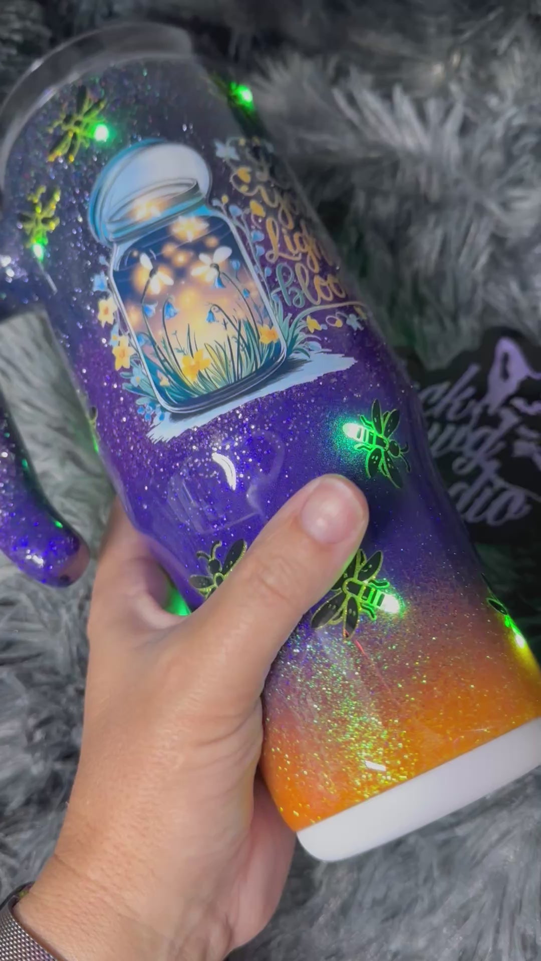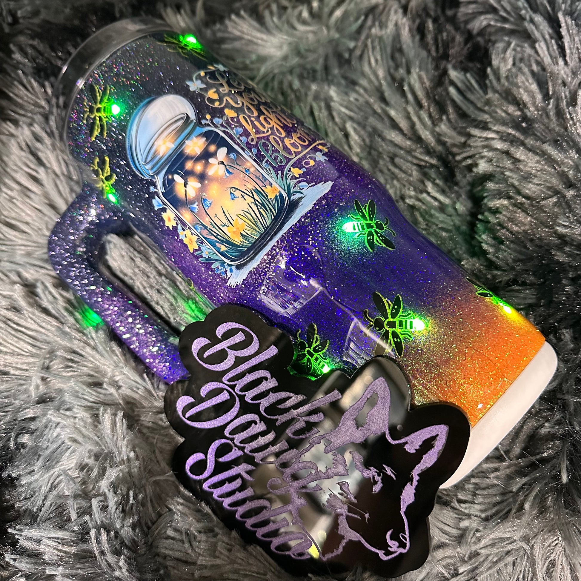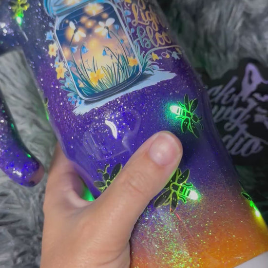 RTS 30oz Grippy Light-Up Tumbler | Fireflies Glitter Dusk Ombrè | Let Your Light Bloom decal | LED Green Lights Battery Operated